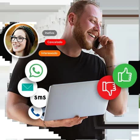 Em uma única tela, você encontra todos os dados necessários sobre as suas oportunidades, tudo muito simples e rápido! Como deve ser. Dessa forma, você e toda a sua equipe estará munida de informações importantes para planejar e executar estratégias mais assertivas. Nas oportunidades você pode acessar os atendimentos e ainda enviar whatsapp, sms ,email ou ligar para seu cliente de modo centralizado, o que otimiza os processos e permite que você e a sua equipe conheçam melhor cada cliente.